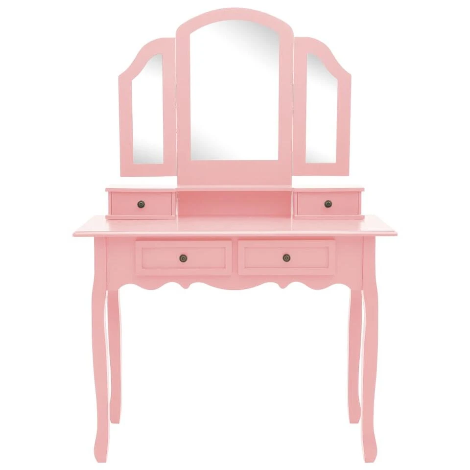 Onze charmante kaptafel met krukje is gemaakt van hoogwaardig paulowniahout. De Victoriaanse stijl en mooie roze afwerking geven een vleugje elegantie en schoonheid aan je slaapkamer, opmaakkamer of inloopkast. Het uitstekende vakmanschap maakt de kaptafelset nog opvallender.