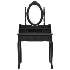 Dit prachtige dressoir is gemaakt van hoogwaardige paulowniahout en heeft een uniek silhouet en vier luxe poten. De 4 lades en 1 open vak bieden de perfecte hoeveelheid ruimte voor het opbergen van make-up en sieraden. Het tafelblad is ook een uitstekende plek om flesjes parfum of andere versieringen op te plaatsen. De meegeleverde kruk heeft een rugloze zitting die bestaat uit een kussen met een bijpassend houten onderstel. Bovendien benadrukt de ingebouwde spiegel het silhouet voor een eigentijdse flair.