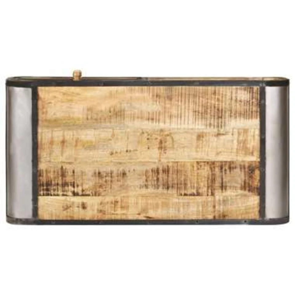 De banktafel is gemaakt van massief mangohout, een hardhout met dichte houtnerven. Ruw mangohout heeft niet alleen de kracht om veel gewicht te dragen, maar is ook goed bestand tegen slijtage. Daarom is deze prachtig ontworpen houten salontafel stabiel, duurzaam en opvallend. Deze bijzettafel is volledig met de hand gemaakt en de verfijnde houtnerven maken elk meubel onderscheidend en enigszins anders dan de rest. Het ijzeren frame draagt bij aan de industriële stijl van de tafel. Deze salontafel beschikt over 2 lades en 1 compartiment en biedt ruimte voor het opbergen van je multimedia-apparaten, boeken en diverse andere spullen.
