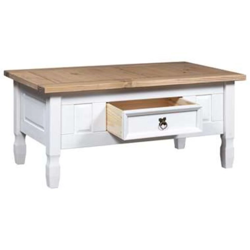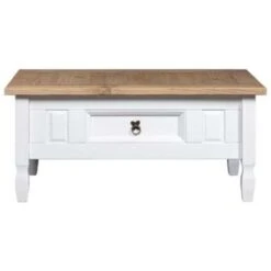 Deze hoogwaardige houten salontafel is een meubel in de Mexicaanse -stijl. Het gewaxte grenenhout ademt een rustieke Mexicaanse charme uit die de tafel een geweldige aanvulling op je woon- of zitkamer maakt.