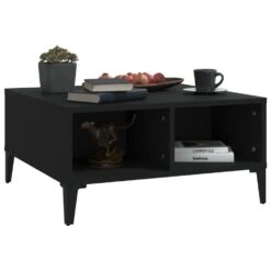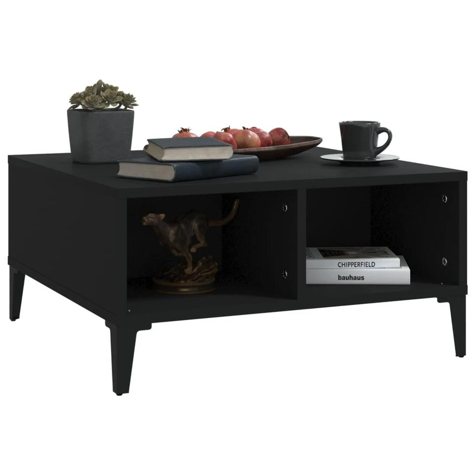 Deze middentafel is gemaakt van spaanplaat, wat zorgt voor stevigheid, duurzaamheid en langdurige dienstbaarheid. Daarnaast zorgen de metalen poten ook voor extra stabiliteit. Deze bijzettafel heeft 4 vakken, waardoor er voldoende opbergruimte is. Bovendien is het stevige tafelblad perfect voor het plaatsen van je drankjes, etenswaren en andere decoratieve items. Verder is de woonkamertafel makkelijk schoon te maken met een vochtige doek.