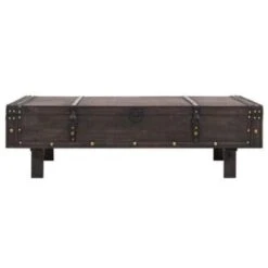 Deze salontafel is gemaakt van massief hout met een antieke kleurstijl en is gedecoreerd met kunstleren banden en metalen elementen. Hierdoor heeft de tafel een vintage charme. De houten salontafel heeft een groot opbergvak voor kleding, boeken, tijdschriften en alles wat je graag binnen handbereik maar niet in het zicht wilt hebben. Dankzij de vintage look grendel en handvatten is de salontafel gemakkelijk te sluiten en te verplaatsen. Montage is eenvoudig.
