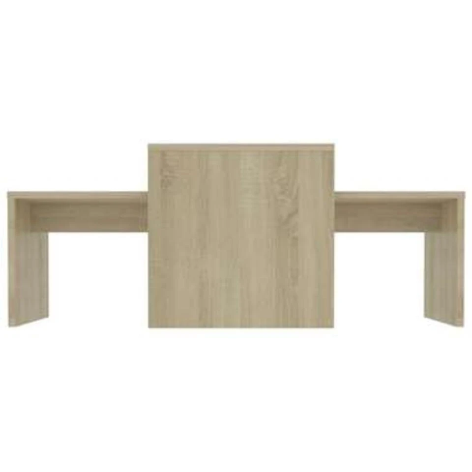 Deze tafelset is gemaakt van hoogwaardig spaanplaat, waardoor hij stabiel en duurzaam is. Op het brede tafelblad kan je drankjes, tijdschriften en andere benodigdheden plaatsen. De salontafel kan ook als bijzettafel, telefoontafel, enz. gebruikt worden. Daarnaast kan je ze individueel gebruiken of in elkaar plaatsen om ruimte te besparen. Wanneer de tafeltjes in elkaar geplaatst zijn, wordt de kleinste tafel een verborgen opslagruimte waar je spullen in kunt opbergen en binnen handbereik kunt houden. Deze set is gemakkelijk schoon te maken met een vochtige doek.