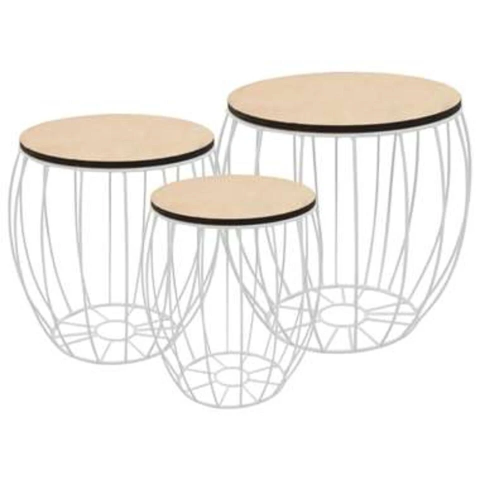 Deze set van 3 salontafels heeft een charmante vintage uitstraling en zal een opvallende aanwinst voor je interieur zijn. De tafels kunnen ook gebruikt worden als opbergmanden, banktafels, bijzettafels, enz.