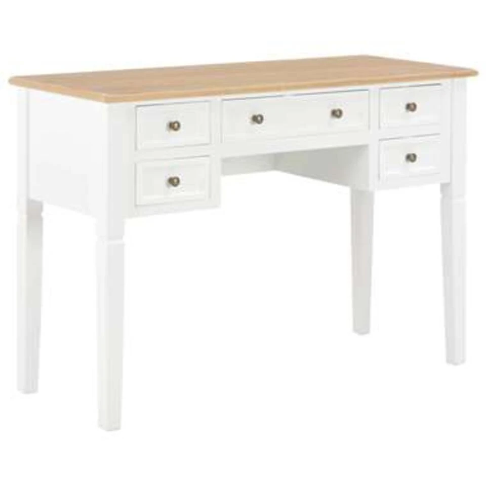 Dit stevige bureau is gemaakt van hoogwaardig MDF en grenenhout en is wit geschilderd.