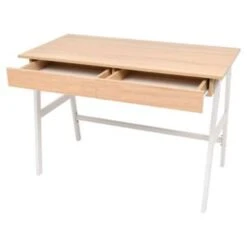 Dit bureau, met een blad van bewerkt hout en stalen poten, is stabiel, duurzaam en vergt weinig onderhoud. De 2 lades bieden veel opbergruimte voor je studiemateriaal zoals boeken, mappen en andere benodigdheden die je bij de hand wilt hebben. De schrijftafel is eenvoudig schoon te houden met een vochtig doekje vanwege de melamine afwerking.