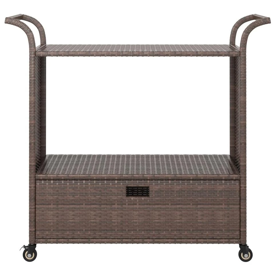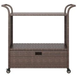 Deze trolley is gemaakt van poly rattan en is weerbestendig en onderhoudsvrij. Hij is geschikt voor dagelijks gebruik. De kar heeft een lade om te voorkomen dat etenswaren op de grond vallen. Het gepoedercoat stalen frame houdt de serveerwagen stabiel en stevig. De handvatten aan de bovenkant maken het makkelijk om hem te duwen en te trekken. Dankzij de soepel rollende wielen is de trolley moeiteloos te verplaatsen. Daarnaast hebben twee van de zwenkwielen een vergrendelingsfunctie om te voorkomen dat de kar wegrolt.