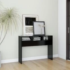 Deze gangtafel is gemaakt van hoogwaardig spaanplaat, waardoor hij duurzaam en makkelijk schoon te maken is. Hij biedt de ideale plek om sleutels, planten, geurkaarsen en decoratieve items op te plaatsen, zodat je je ruimte kan ordenen en georganiseerd kan houden. Dit meubel neemt weinig ruimte in beslag en verfraait je hal, woonkamer of werkplek.