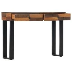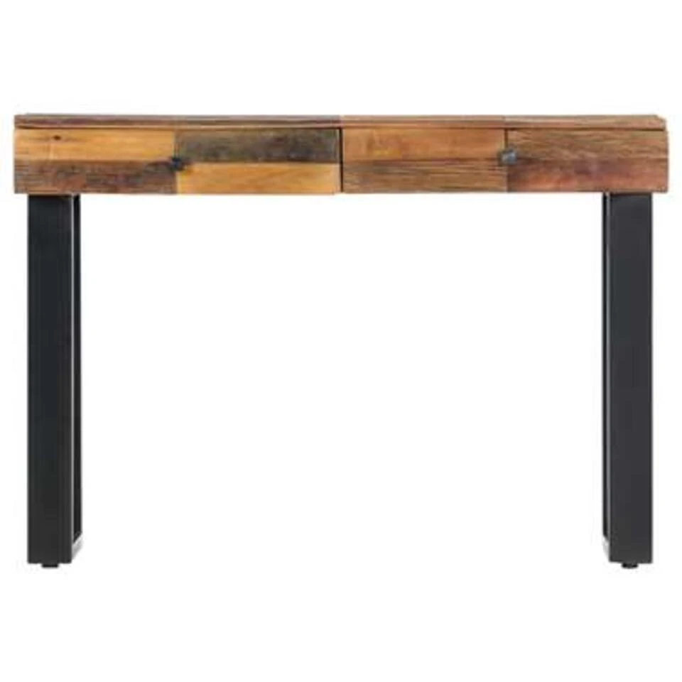 Deze haltafel is gemaakt van massief gerecycled hout dat afkomstig is van balken, vloeren en steunbalken. Het hout is al verouderd, verweerd en gedroogd, waardoor het niet krimpt of buigt. Tekenen van slijtage en het vakmanschap geven elk meubelstuk een unieke uitstraling en dragen bij aan de spectaculaire vintage stijl. De gepoedercoat stalen poten dragen bij aan de stabiliteit van de tafel en aan zijn industriële charme. De 2 lades bieden voldoende ruimte voor het ordenen van je spulletjes.
