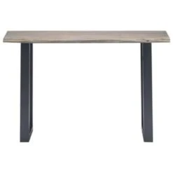 - Materiaal: massief acaciahout met een grijze afwerking (tafelblad) en gepoedercoat ijzer (poten)