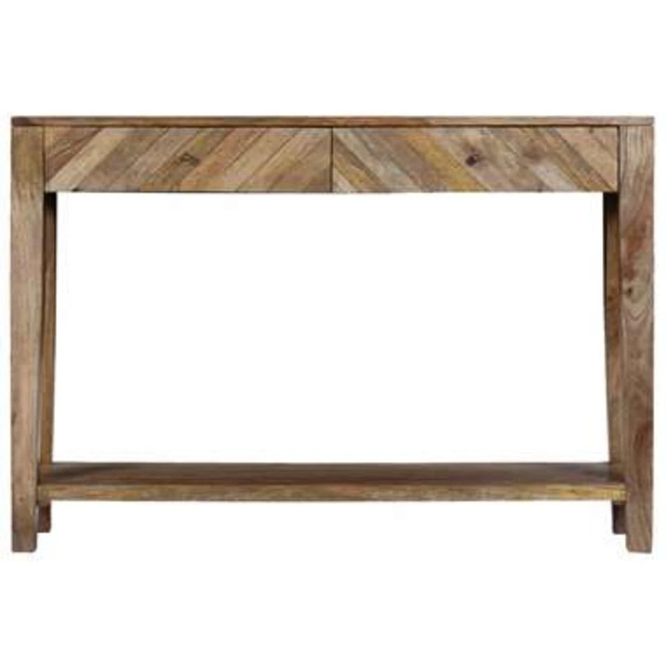 De bijzettafel is gemaakt van massief mangohout dat gepolijst, geschilderd en gelakt is, maar nog steeds een natuurlijke kleur en stoere uitstraling heeft. Deze tafel is volledig met de hand gemaakt en de prachtige houtnerven maken elk meubel uniek en enigszins anders dan de rest. Deze bijzettafel heeft een stevig en stabiel oppervlak waarop je fruitmanden, vazen en andere decoratieve voorwerpen kunt plaatsen. Deze wandtafel heeft 2 lades en 1 schap die voldoende ruimte bieden om tijdschriften, boeken en andere kleine voorwerpen binnen handbereik te houden. Montage is eenvoudig