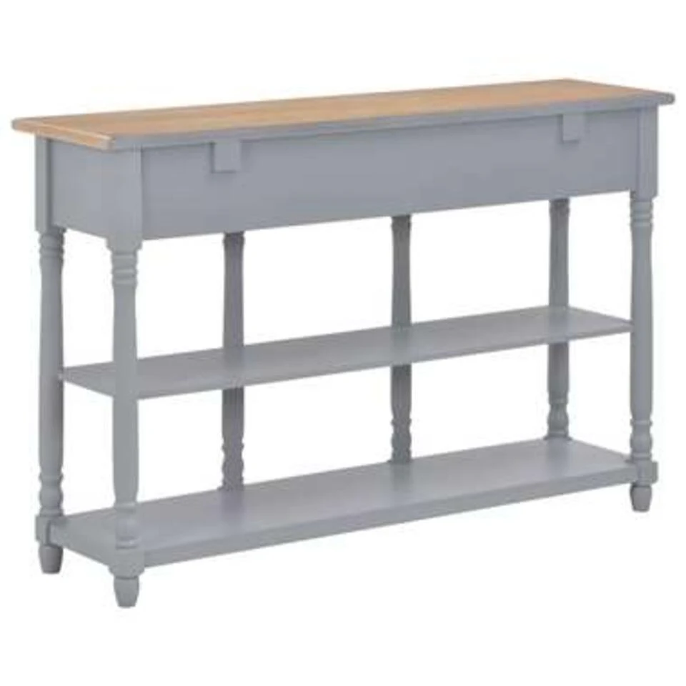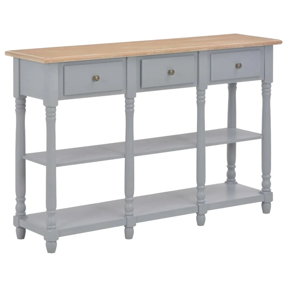 De tafel heeft een stevig MDF-blad waarop je decoratieve spullen, zoals fruitmanden en vazen, kunt plaatsen. De massief grenenhouten poten garanderen de stabiliteit en duurzaamheid. Bovendien bieden de 3 lades voldoende ruimte om allerlei kleinere spullen geordend en binnen handbereik te houden. De 2 schappen bieden extra ruimte voor het opbergen van je schoenen en andere voorwerpen.