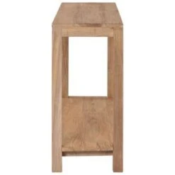 De tafel is handgemaakt van massief teakhout en het voortreffelijke vakmanschap en de esthetisch aantrekkelijke houtnerven maken elk meubelstuk net iets anders dan de rest. Bovendien dragen de sterke houten poten bij aan de stevige constructie. Het geïntegreerd schap houdt je woonkamer opgeruimd.