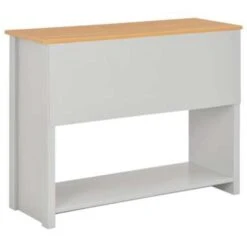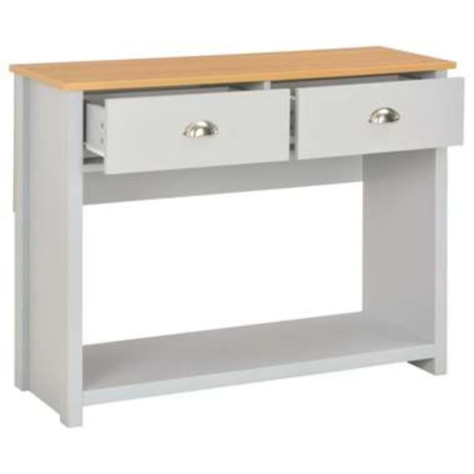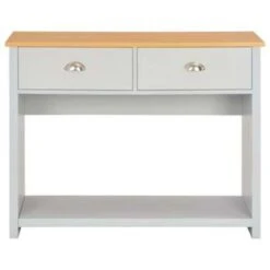 De tafel is gemaakt van bewerkt hout met melamine en heeft een stevig blad waarop je decoratieve spullen, zoals fruitmanden en vazen, kunt plaatsen. De stevige poten garanderen de stabiliteit en duurzaamheid. Bovendien bieden de 2 lades en het schap voldoende ruimte om allerlei spulletjes geordend en binnen handbereik te houden.