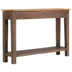 De tafel is gemaakt van massief hout dat, door polijsten, schilderen en lakken, een mooie afwerking heeft gekregen om hem een verfijnde uitstraling te geven. De verschillen in kleuren geven de tafel een unieke uitstraling. Deze salontafel is volledig met de hand gemaakt en de prachtige houtnerven maken elk meubel uniek en enigszins anders dan de rest. Deze bijzettafel heeft een stevig en stabiel oppervlak waarop je fruitmanden, vazen en andere decoratieve voorwerpen kunt plaatsen. Deze wandtafel heeft 2 lades en 1 schap die voldoende ruimte bieden om tijdschriften, boeken en andere kleine voorwerpen binnen handbereik te houden. Montage is eenvoudig