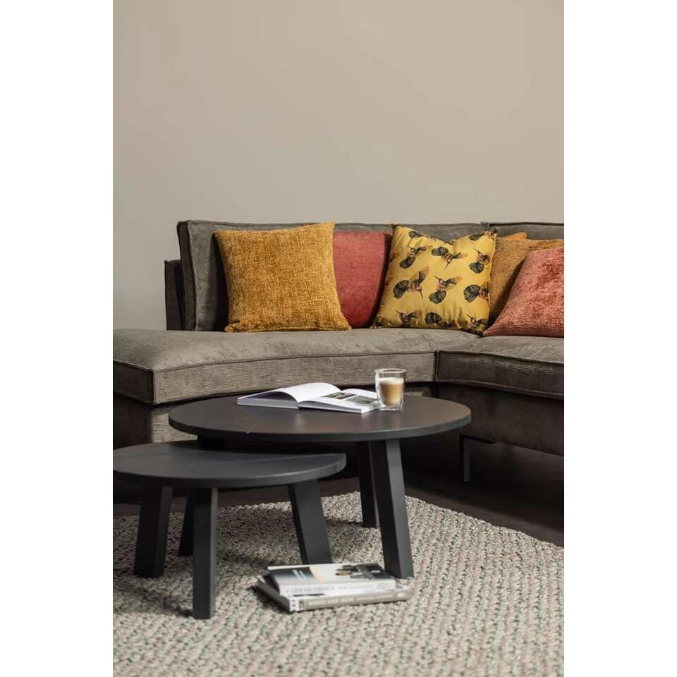 Woood bijzettafel Benson is een ronde zwarte tafel gemaakt van grenenhout. Deze tafel heeft een stoere uitstraling en een industriële look. Deze tafel heeft een afmeting van 30×80 cm (hxØ). Wil jij extra plek voor een hapje of drankje creëren of wil je jouw interieur nét wat extra sfeer meegeven? Dan is dit bijzettafeltje perfect voor jou.Â