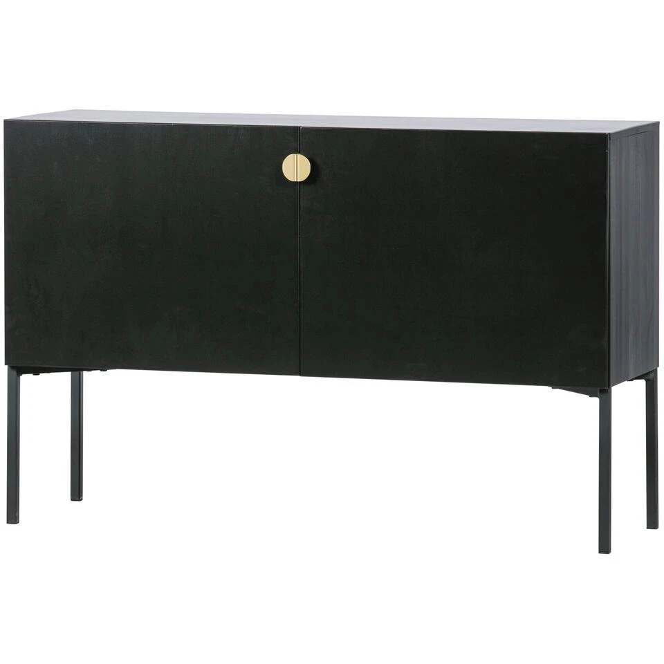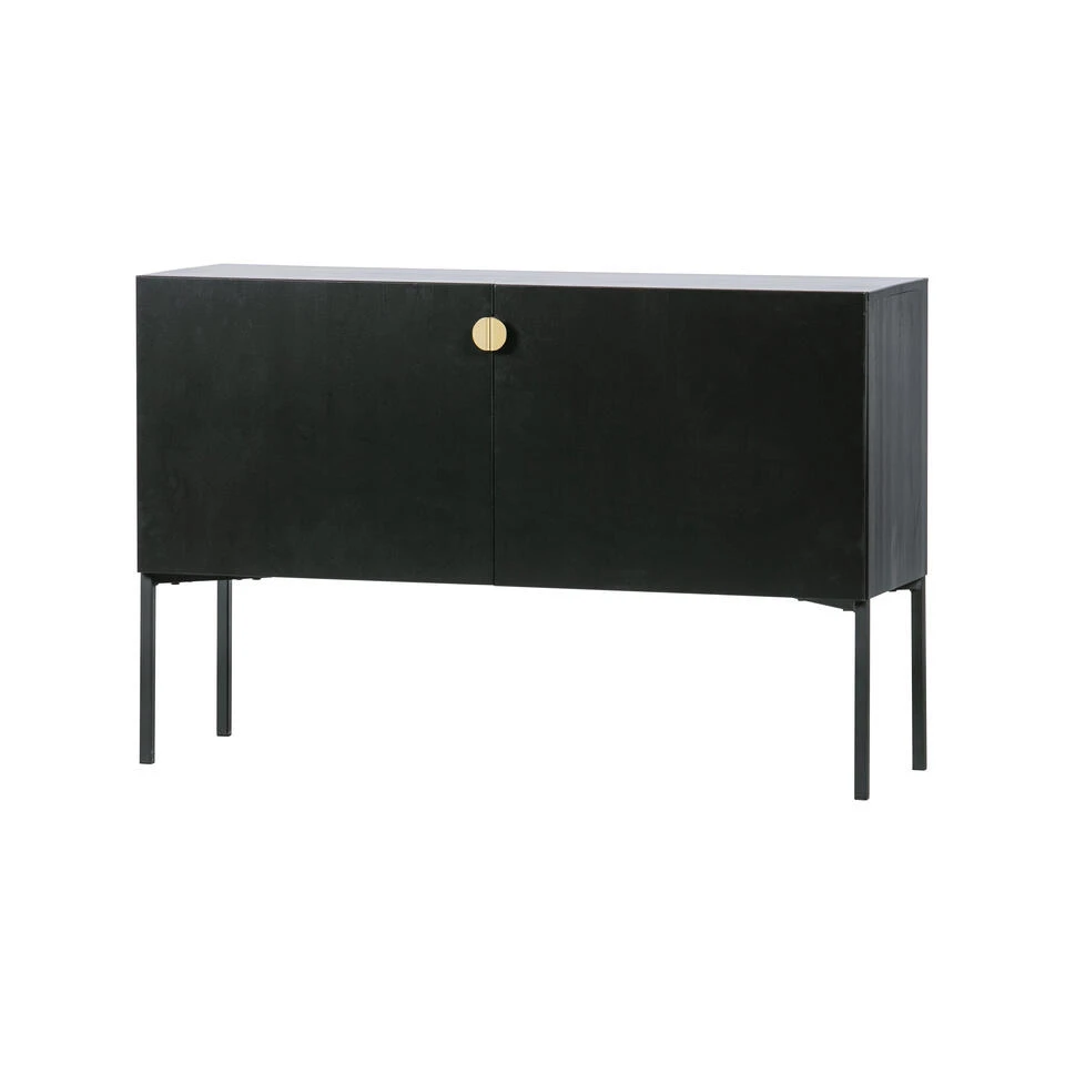 Stoer, maar wel met een elegante look door de goudkleurige handgrepen. Hero is een eigen ontwerp uit de collectie van WOOOD. Hero is gemaakt van massief grenenhout met een stoere zwarte afwerking. Het onderstel is gemaakt van zwart metaal. Doordat Hero een hoge metalen poot heeft toont hij slank in de ruimte.