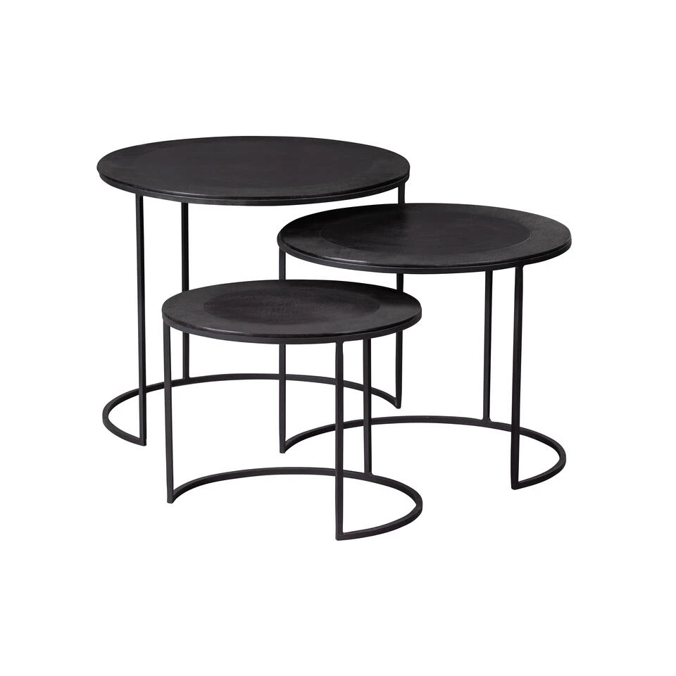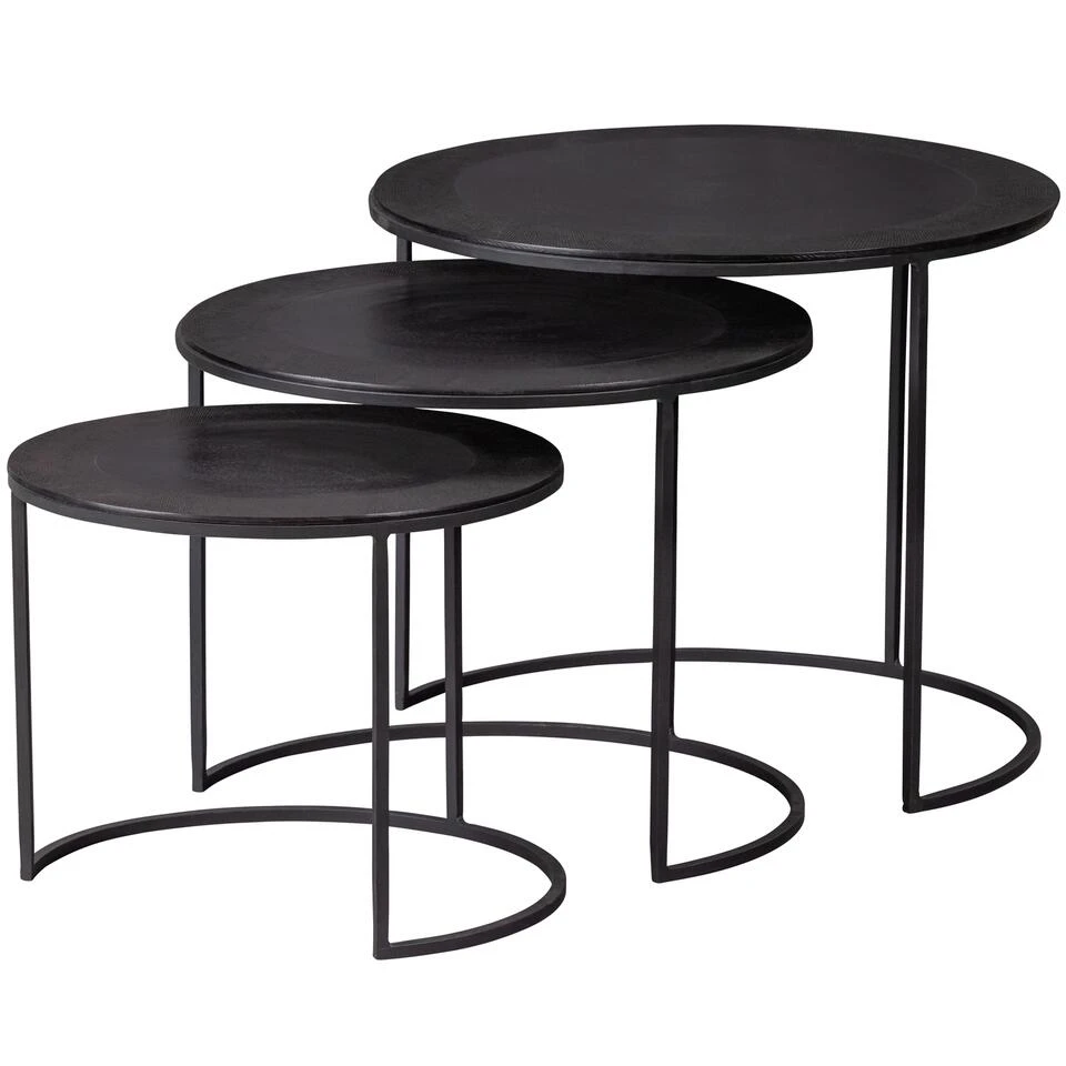 Set van 3 metalen bijzettafels