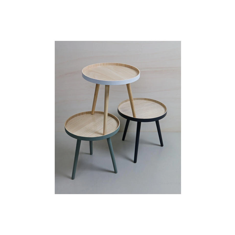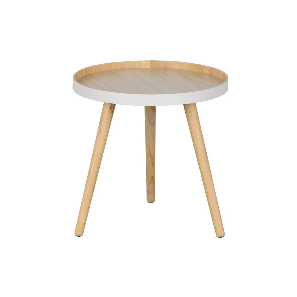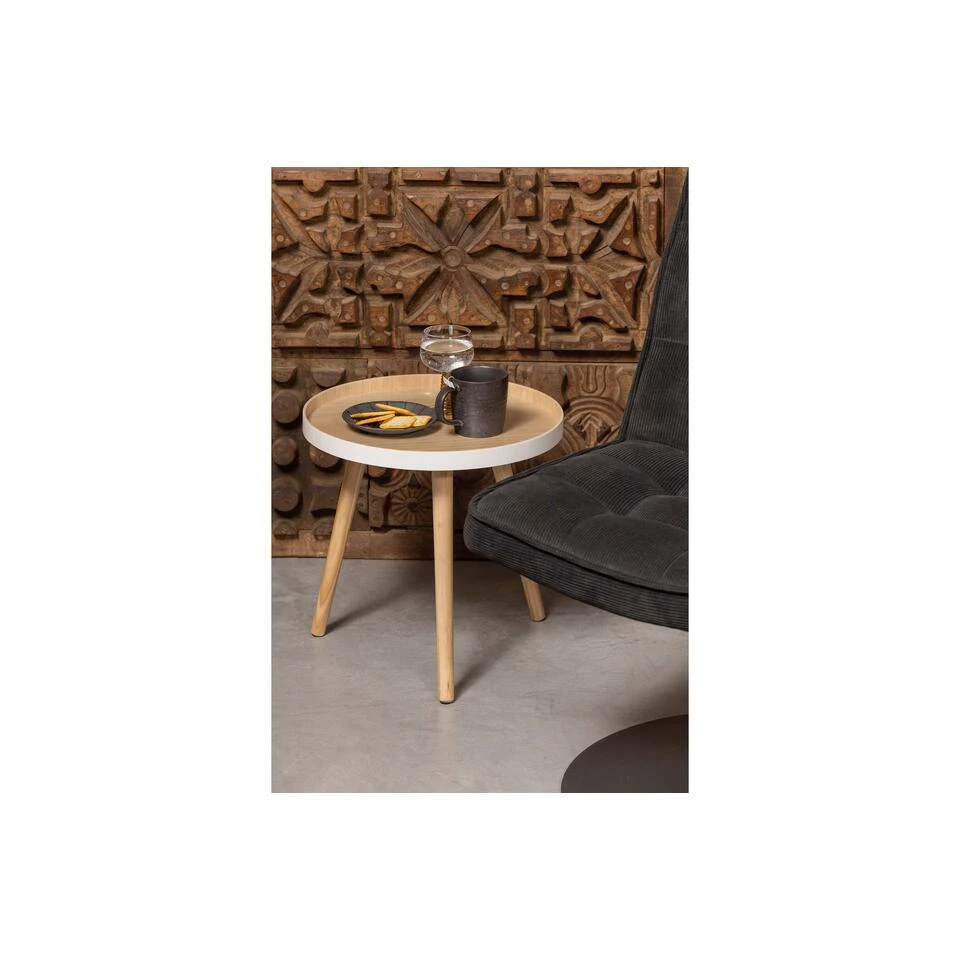 De WOOOD bijzettafel Sasha 41x41x41 cm is een hout tafeltje met een rond bovenblad met opstaande rand en 3 pootjes. De diameter van het tafelblad is 41 cm en de hoogte is ook 41 cm. Het bijzettafeltje Sasha kan in elk interieur geplaatst worden van modern tot klassiek.