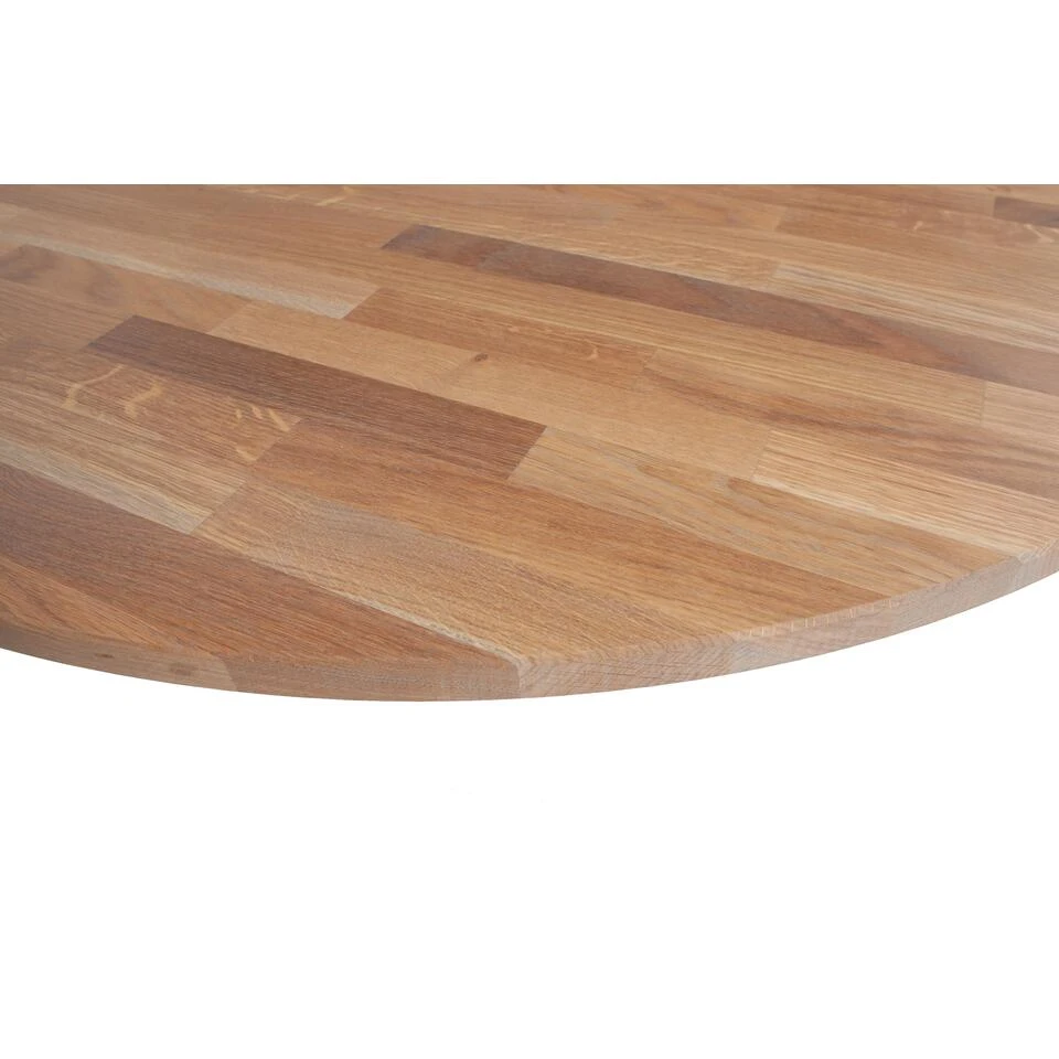 Dit ronde massief eiken -FSC gecertificeerd- tafelblad Tablo is van het Nederlandse merk WOOOD. Het tafelblad is behandeld met grijze olie.
