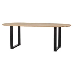 De tafel heeft een hoogte van 75 cm, is 220 cm breed en 90 cm diep. De Tablo U-poot (hxbxd) 72x79x10 cm, komt ook uit de Tablo-collectie van het Nederlandse merk WOOOD. De tafelpoot is vervaardigd uit 40x80x1,2 mm stalen buis en is mat zwart gepoedercoat. De Tablo ovaal met U-poot weegt iets een kleine 44 KG en heeft een draagkracht van 150 KG.