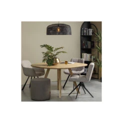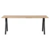Het onderstel van dit eikenhouten meubel is onbehandeld. Zorg ervoor dat u de poten eventueel grondig behandelt met een afwerking naar wens. Het tafelblad is behandeld met een extra matte 2-componenten lak, dit is een combinatie van lak en een verharder. Het blad vraagt niet om een extra behandeling. Kleurverandering is wel mogelijk, dan is het aangeraden om het meubel goed te ontvetten, grondig op te schuren met korrel 280 en stofvrij te maken. Hierna kan de gewenste kleur aangebracht worden op het meubel. Behandeld eikenhout is zeer eenvoudig in het onderhoud. Houd het meubel regelmatig stofvrij met een schone, droge doek. Verwijder vochtige vlekken direct met een licht vochtige doek en neutraal schoonmaakmiddel, laat het hout aan de lucht drogen. Hanteer altijd de basisbescherming voor hout, zoals het gebruik van een onderzetter onder een drinkglas of hete pan.